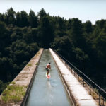 Foil surfer crosses a 19th-century French aqueduct