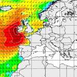 Europe is ready to welcome one of the biggest swells of the last years. Western European coastlines in countries such as Portugal, Spain, France, Ireland, Wales and England will be receiving powerful wave sets on the horizon, between October 26th-29th. A groundswell traveling from North Atlantic will be cruising towards the Bay of Biscay and delivering big surf to the British islands, France, north of Spain and Portugal. The above images shows the swell position at 00:01h, 28th October.