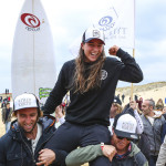 Tyler Wright is the grand winner of the 2016 World Surf League Women’s Championship Tour (CT). The Australian surfer from Culburra Beach secured her first world surfing title at the age of 22. After guaranteeing a spot on on the Roxy Pro France final, Wright saw her rival Courtney Conlogue failing to overcome Carissa Moore in a decisive semifinal heat. As a result, Tyler celebrated with friends and supporters on the beach.